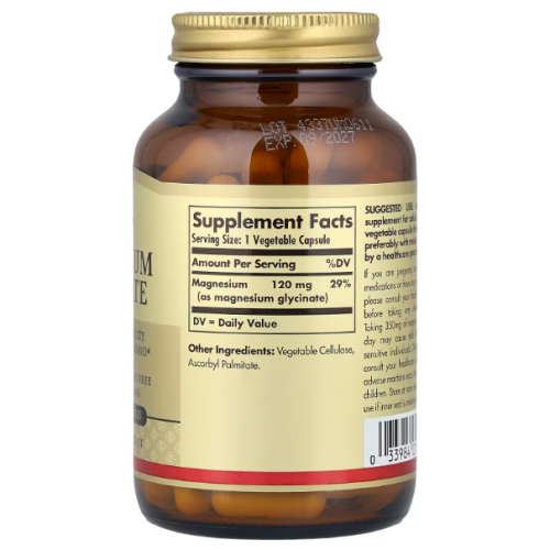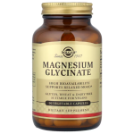 Solgar Magnesium Glycinate — это высокобиодоступная форма магния, связанная с аминокислотой глицином, которая отличается мягким воздействием на желудочно-кишечный тракт и высокой степенью усвоения.