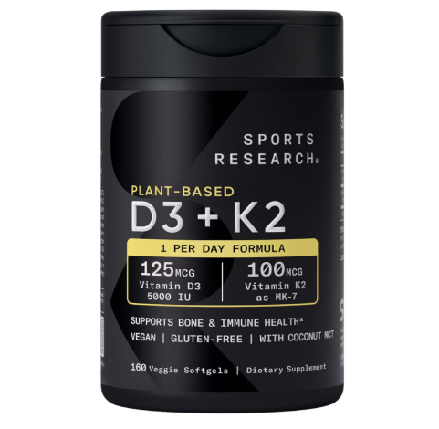 Sports Research Vitamin D3 + K2 — это высокоэффективный комплекс двух ключевых витаминов, которые работают синергично для поддержки здоровья костей, иммунной системы и сердечно-сосудистой функции.