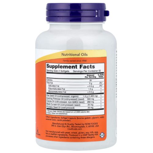 NOW Foods Omega-3-6-9 — это комплекс незаменимых жирных кислот, сочетающий омега-3, омега-6 и омега-9 из натуральных растительных масел.