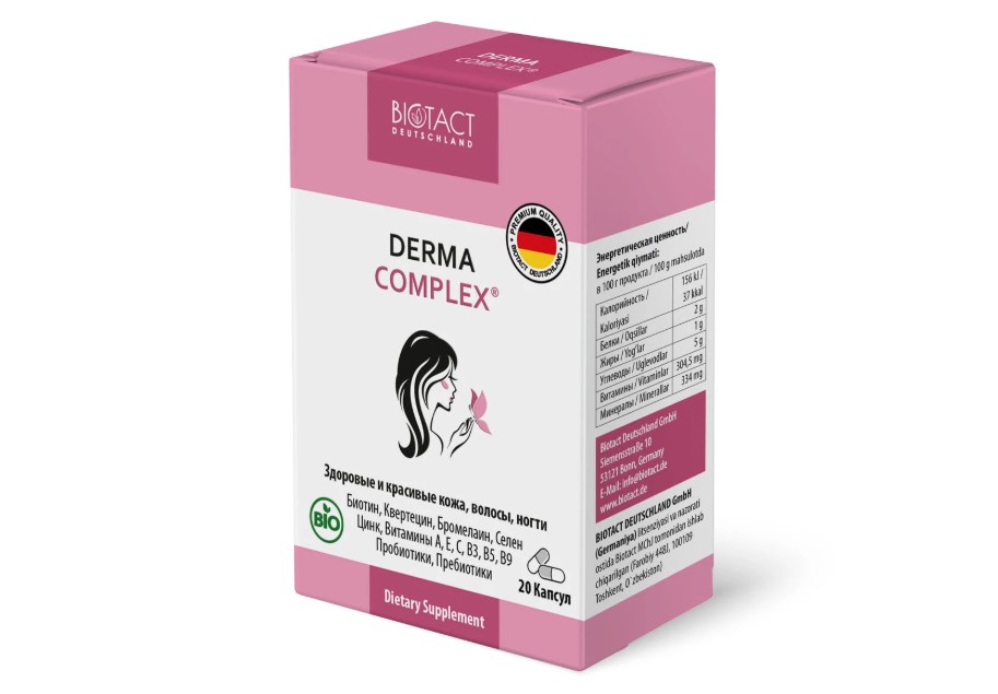 Купить Biotact Derma Complex, 20 капсул вы можете на Evitamin.uz — с гарантией оригинальности, быстрой доставкой и профессиональной консультацией в Узбекистане. ✨