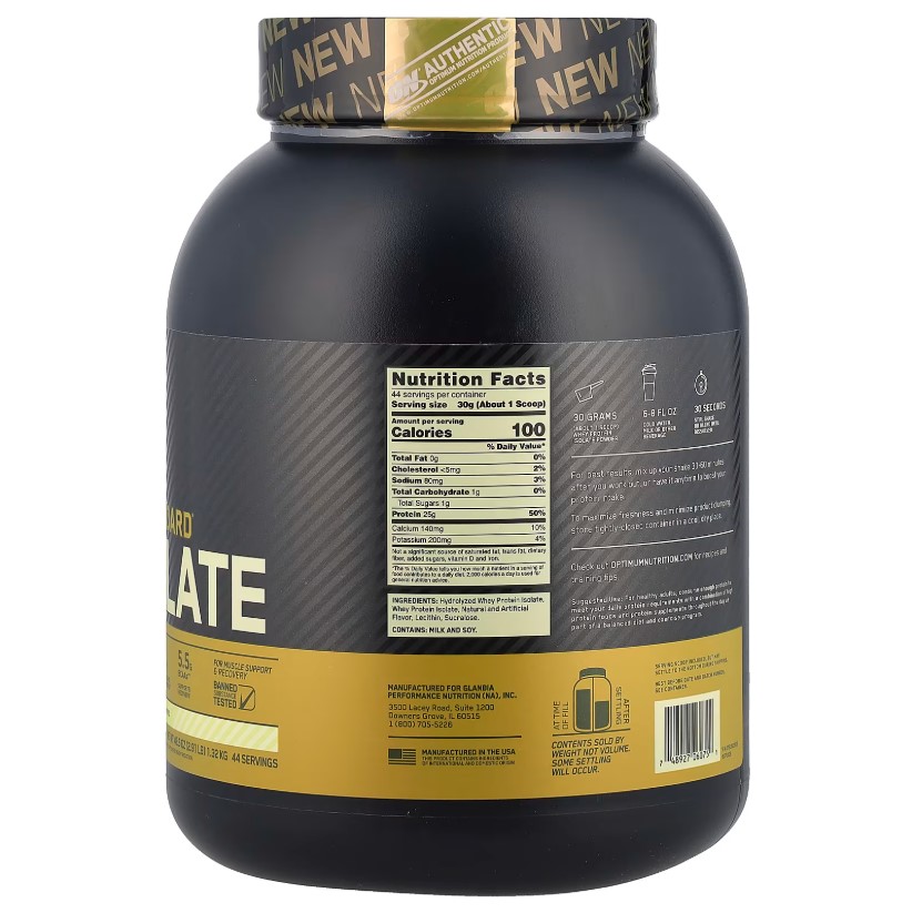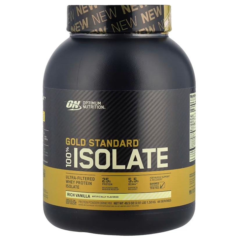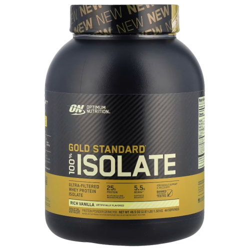 Optimum Nutrition Gold Standard 100% Isolate — это премиальный чистый изолят сывороточного белка, очищенный от жиров, сахара и лишних углеводов. В каждой порции содержится до 25 г белка, минимум лактозы и всего 0,5–1 г сахара. Прекрасно усваивается, не вызывает тяжести и идеально подходит для набора сухой мышечной массы и восстановления после тренировок.