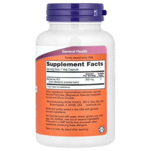 NOW Foods использует чистый и высокоусвояемый берберин HCl — с максимально доступной формой и растительной капсулой, которая подходит вегетарианцам.