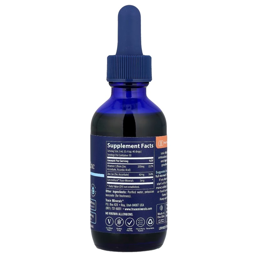 Trace, Liquid Ionic Vitamin C + Zinc, Жидкий ионный витамин С + цинк, 59 мл