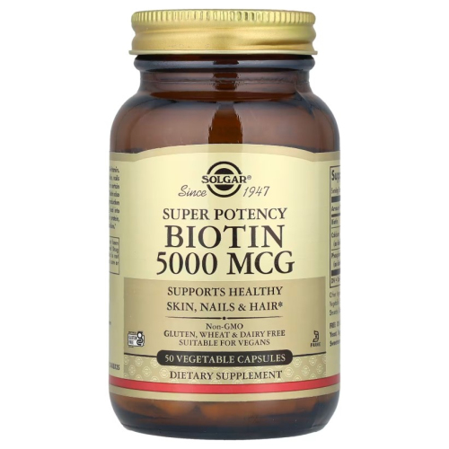 Solgar Biotin 5000 мкг — это высокодозированная формула витамина B7 (биотин), созданная для комплексной поддержки красоты и обмена веществ.