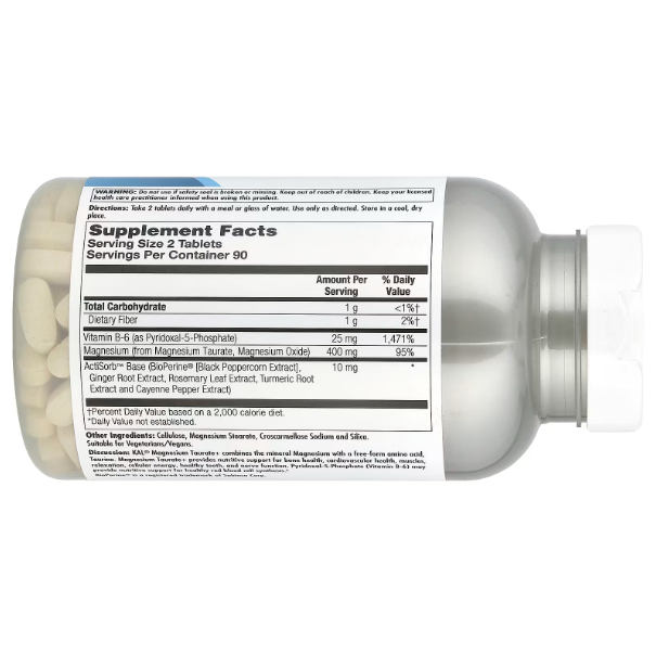 KAL, Таурат магния+, Magnesium Taurate Plus, 200 мг, 180 таблеток - Купить за 430 000 UZS