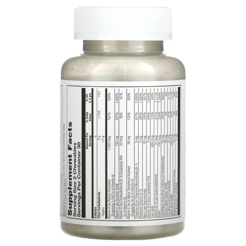 Kids Vitamin & Minerals от Solaray — это тщательно подобранный комплекс витаминов и минералов в форме вкусных жевательных таблеток с ароматом вишни. Добавка помогает восполнить ежедневные потребности ребёнка в жизненно важных веществах для роста, развития и поддержания иммунитета.