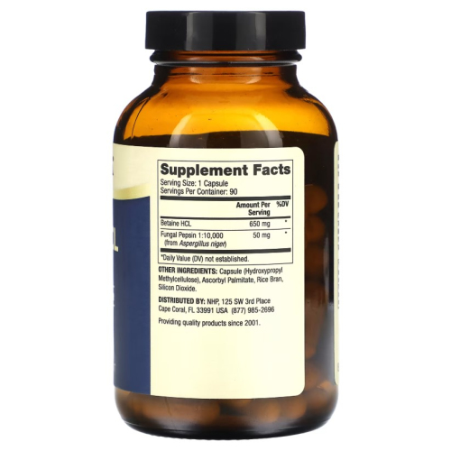 650 мг бетаин HCl + пепсин в каждой капсуле