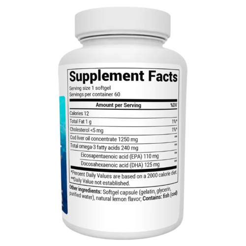 Dr. Berg Wild-Caught Omega-3 Cod Liver Fish Oil — это высококачественный рыбий жир из печени дикой трески, полученной из экологически чистых вод.