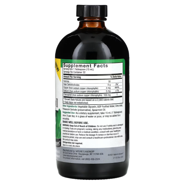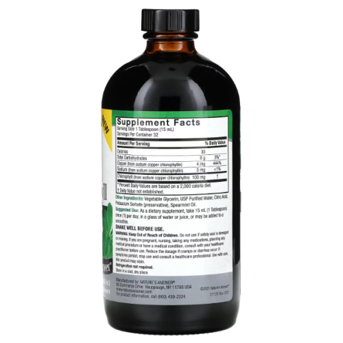Nature’s Answer Liquid Chlorophyll — это натуральный жидкий хлорофилл, полученный из растений, предназначенный для поддержки детоксикации организма, внутренней чистоты и общего самочувствия.