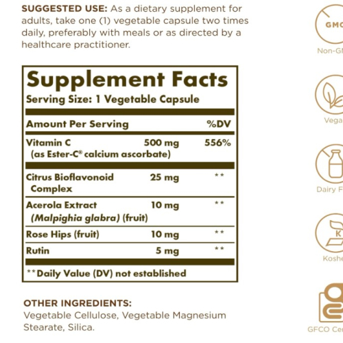 Solgar Ester-C Plus — это уникальная, запатентованная форма витамина С, которая отличается повышенной биодоступностью, мягким воздействием на желудок и длительным сохранением уровня витамина в организме.