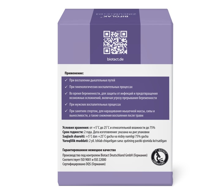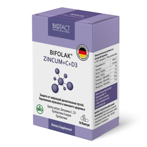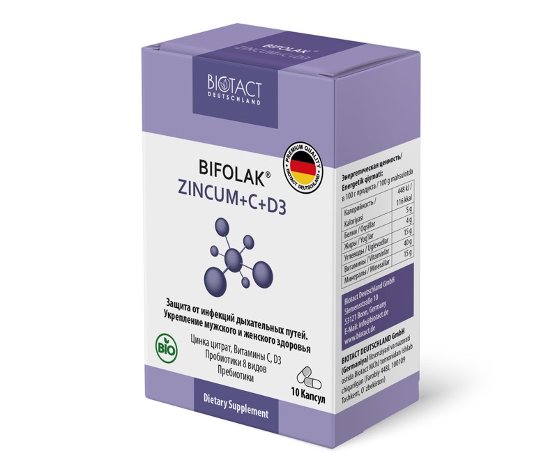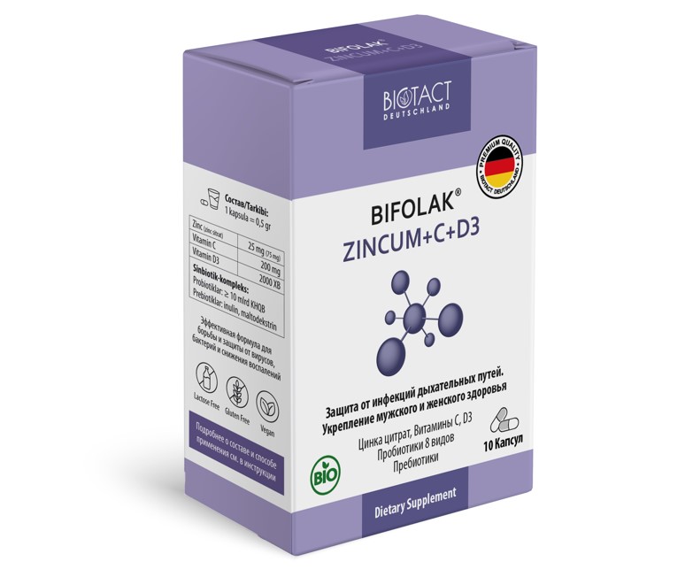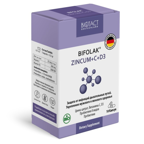 Bifolak Zincum + C + D3, Цинк+С+Д3, 10 капсул - Купить за 85 000 UZS