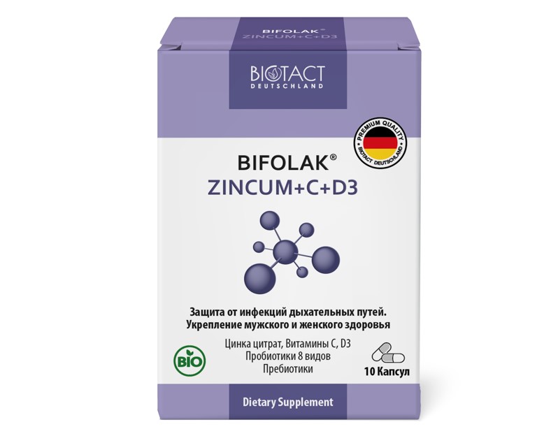 Bifolak Zincum + C + D3 — это комплексная формула для поддержки иммунитета, дыхательной системы и общего здоровья, сочетающая цинк, витамины C и D3 с пробиотиками.