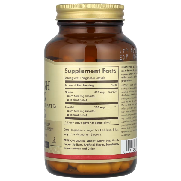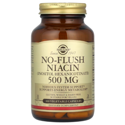 Solgar Niacin 500 мг — это витамин B3 (ниацин), водорастворимый витамин из группы B, который играет ключевую роль в энергетическом обмене и работе нервной системы.