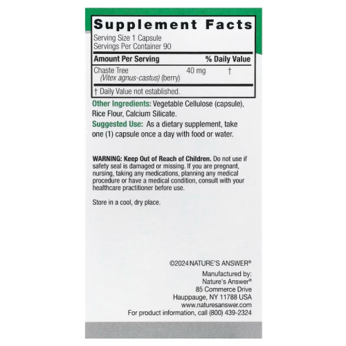 Nature’s Answer Vitex (Витекс священный) — это натуральная растительная добавка, созданная для поддержания гормонального баланса у женщин.