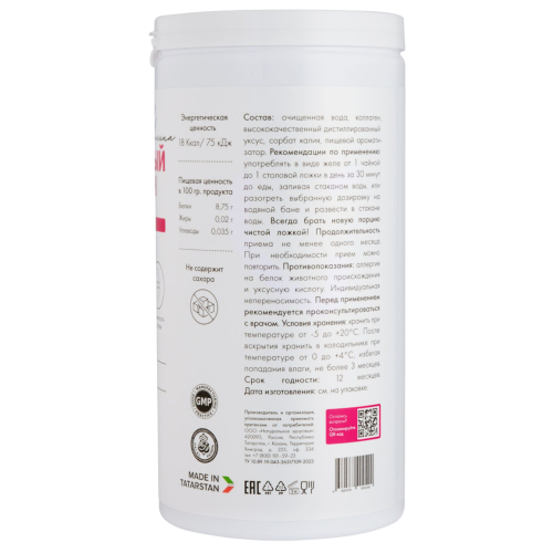 Очищенная вода, коллаген, высококачественный дистиллированный уксус, сорбат калия, пищевой ароматизатор.