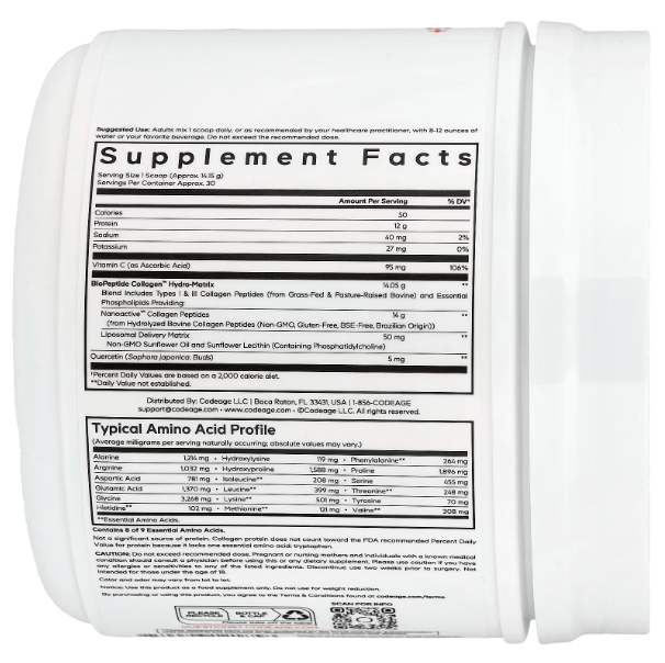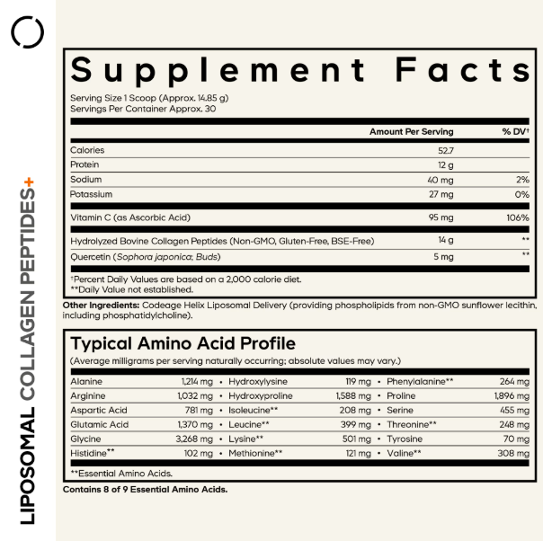 Codeage Liposomal Collagen Peptides — это инновационный комплекс с липосомальной технологией доставки коллагена, обеспечивающей улучшенное усвоение и более выраженный эффект по сравнению с обычными формами.
