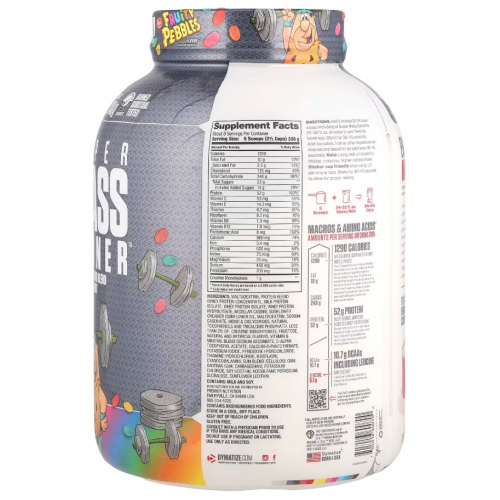 Dymatize Super Mass Gainer Fruity Pebbles — это мощная высококалорийная формула для быстрого набора массы, созданная для спортсменов, эктоморфов и всех, кто испытывает трудности с набором веса. Содержит более 1200 калорий, 52 г белка и 240 г углеводов в порции, а вкус фруктовых хлопьев делает каждый коктейль настоящим десертом.