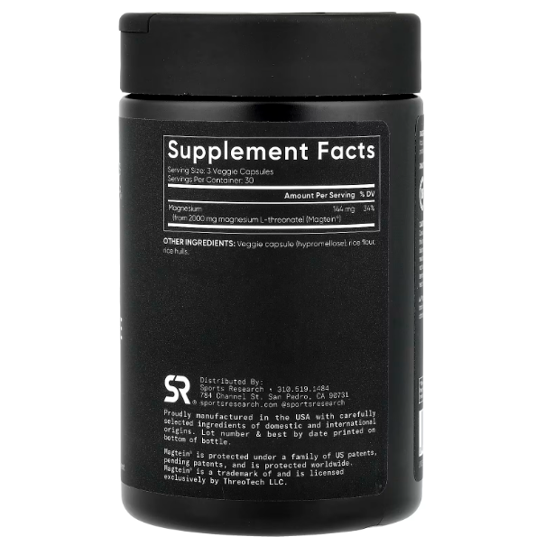Sports Research Magnesium L-Threonate — это инновационная форма магния, разработанная специально для поддержки работы мозга, памяти и концентрации.