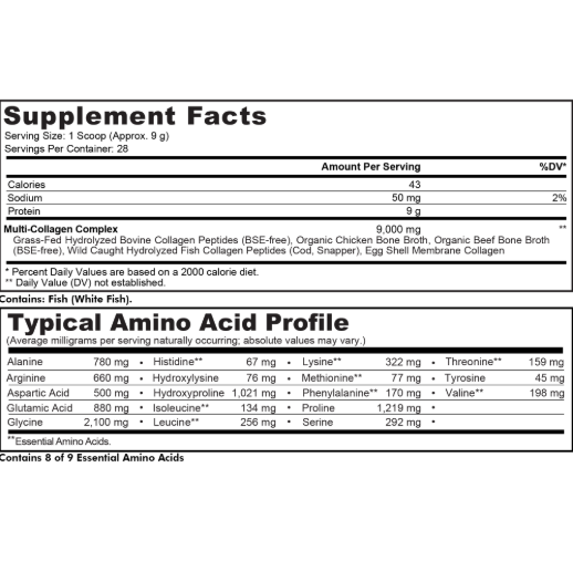 Формула включает коллаген из говядины травяного откорма, куриного и говяжьего костного бульона, морской рыбы и яичной мембраны, обеспечивая широкий спектр аминокислот и пептидов для поддержки кожи, суставов и соединительных тканей