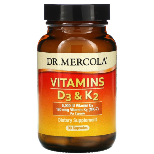 Dr. Mercola, Витамины D3 и K2, Vitamin D3+К2, (5000 МЕ) 125 мкг, 90 капсул - Купить за 880 000 UZS